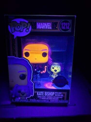 Funko POP! Marvel Hawkeye Kate Bishop with Lucky the Pizza Dog #1212 Blacklight Exclusive - Target